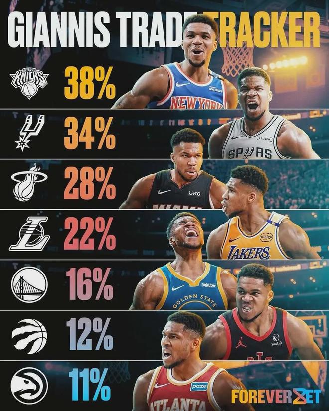 同樣來自Shams的報道,字母哥與雄鹿(10勝15負,東部第十)的結局已定,即他會進入交易市場,尼克斯(16勝7負,東部第二)乃其最熱門的新下家,當然其他隊伍也能參與進競價之中。