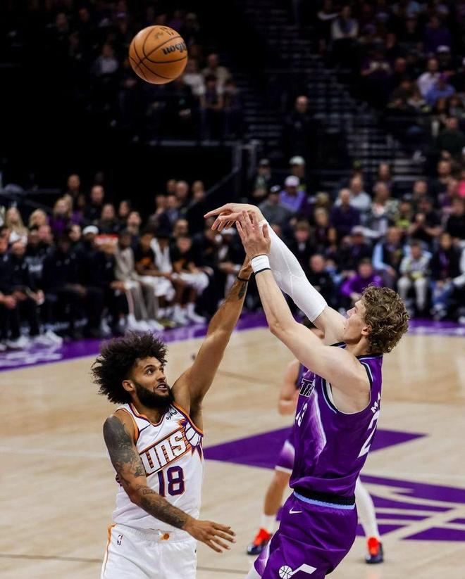 中場休息回來,太陽繼續被拉開66-76落后,并在之后維持69-79落后。布克與馬威內外開花,太陽打出13-2攻勢反超1分,雙方繼續交替領先,爵士在馬爾卡寧引領下回敬一波小高潮奪回領先優勢,太陽單節25-30再輸5分,三節結束太陽86-94落后爵士。前三節比賽,布克20+4+7與馬威17+5,引領太陽4人得分上雙,馬爾卡寧31+11引領爵士也是4人得分上雙。
