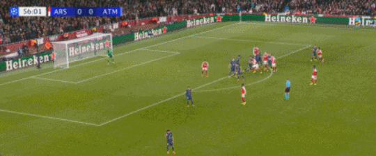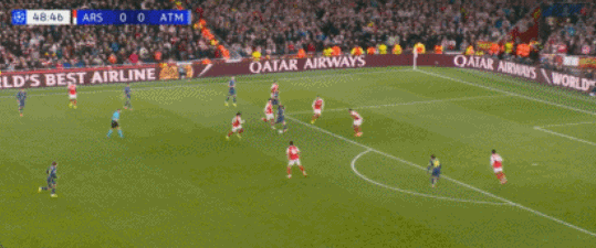 客場作戰的馬競,很難創造威脅攻勢,更多依靠阿森納的失誤尋找機會。第26分鐘,阿森納門將拉亞出擊玩火,馬競發出界外球,阿爾瓦雷斯直接兜射滑門而出。